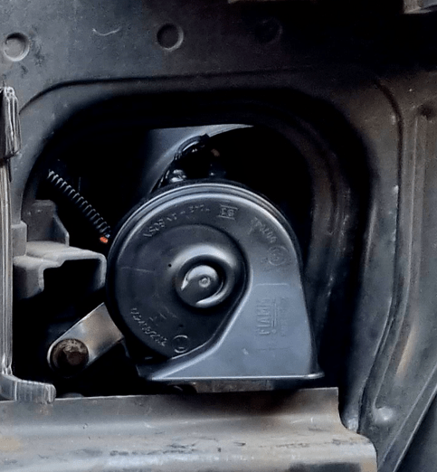 De oude claxon kan nu eenvoudig worden verwijderd door de stekkers los te trekken en de bout waarmee deze vast zit los te draaien en de nieuwe claxon te monteren.