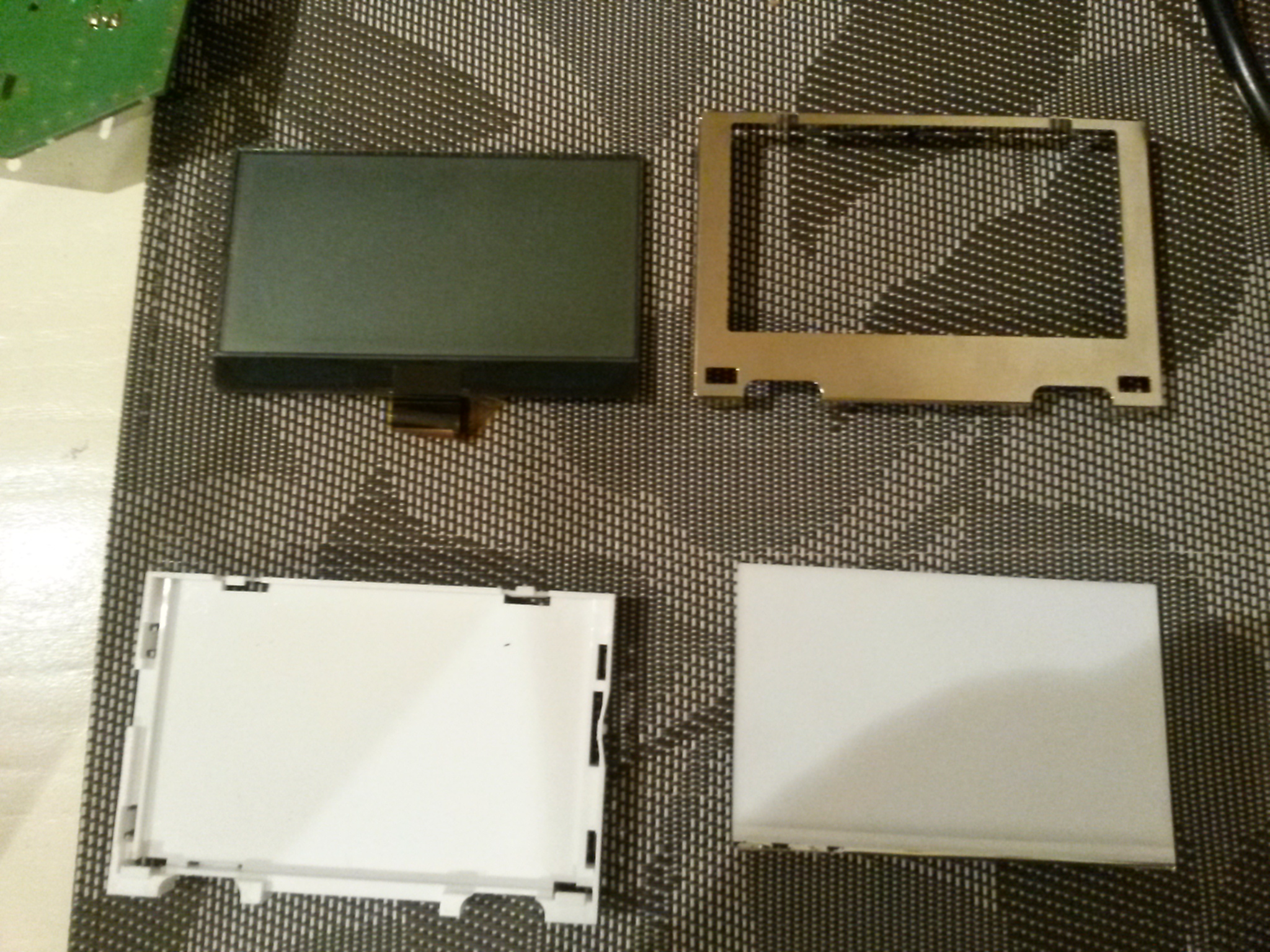 Verwijder voorzichtig de achterzijde en verwijder de printplaat met scherm van het frontje. (let op dat je de knoppen en veren hiervan niet kwijt raakt).