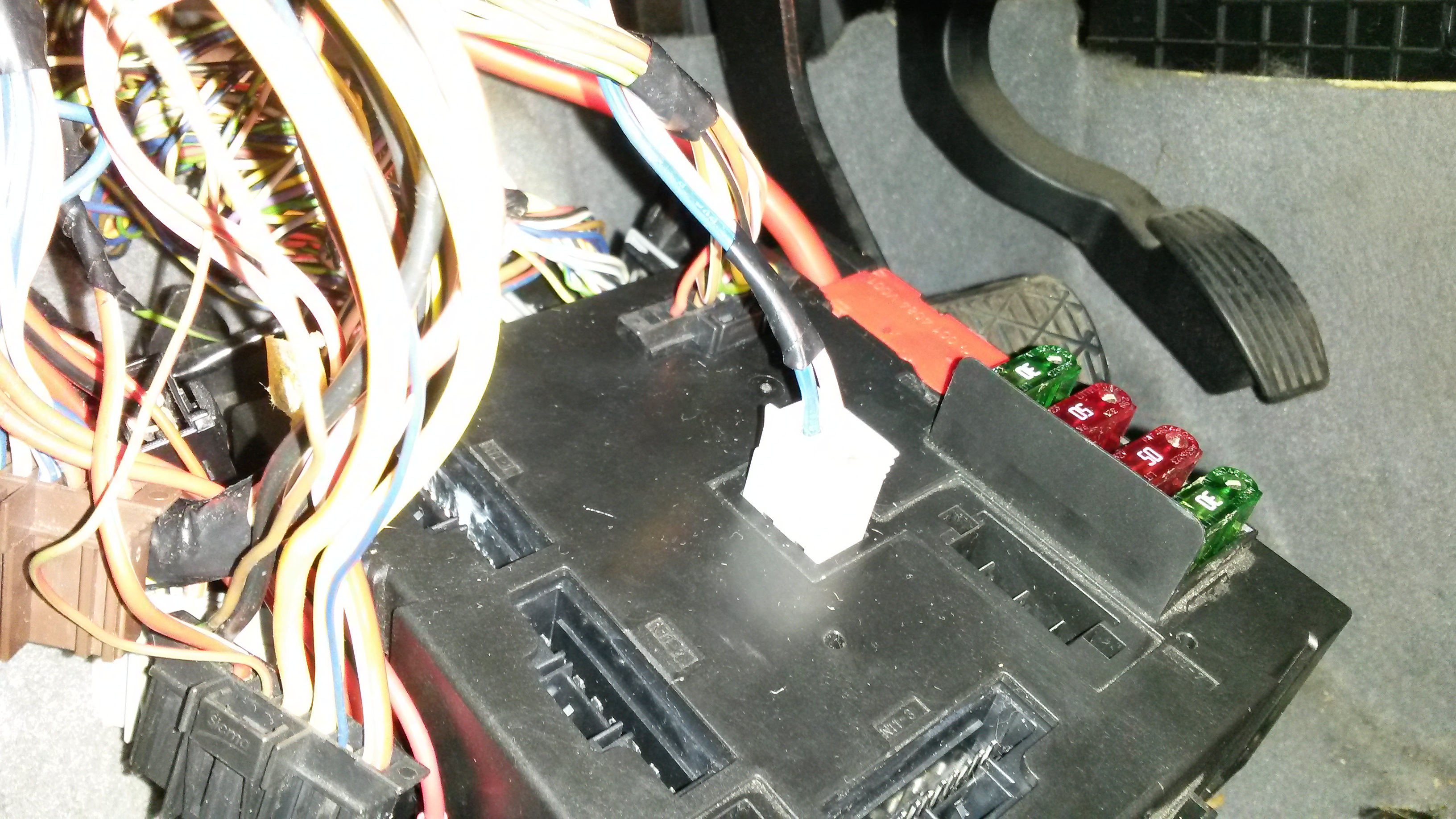 De SAM unit bevindt zich in het bestuurdersgedeelte boven je linker voet. Als je onder het dashboard kijkt dan zie je de zekeringen in de SAM unit zitten.